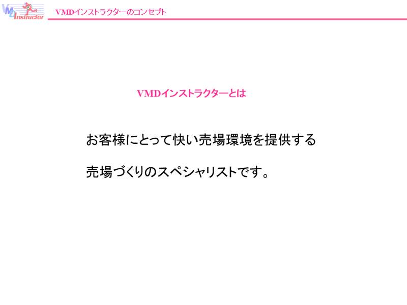 VMDのノウハウ、ハウツー、スキルといったナレッジを従業員に教える人、それがまさにVMDインストラクターなんです。