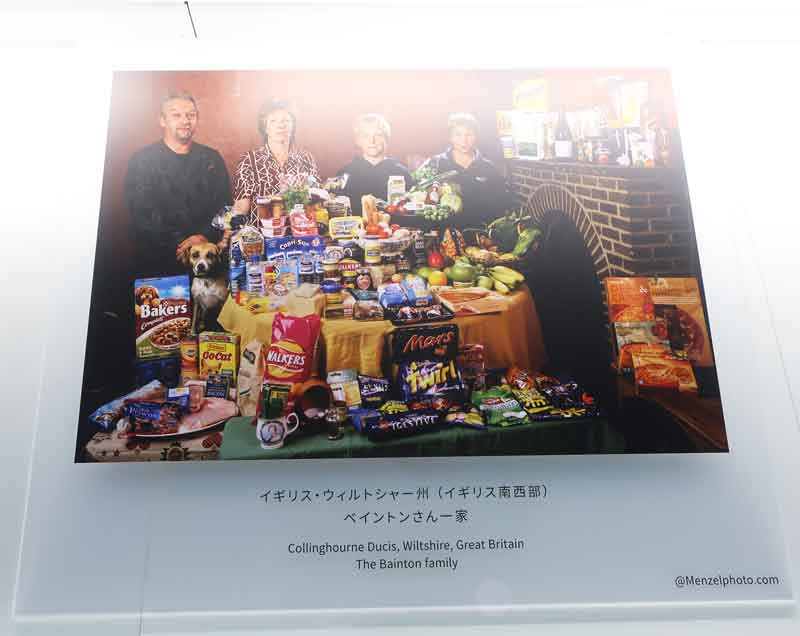 上は、世界の世帯食品消費量を表したパネル写真群。