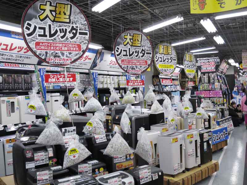 上はヨドバシカメラのシュレッダー売場。