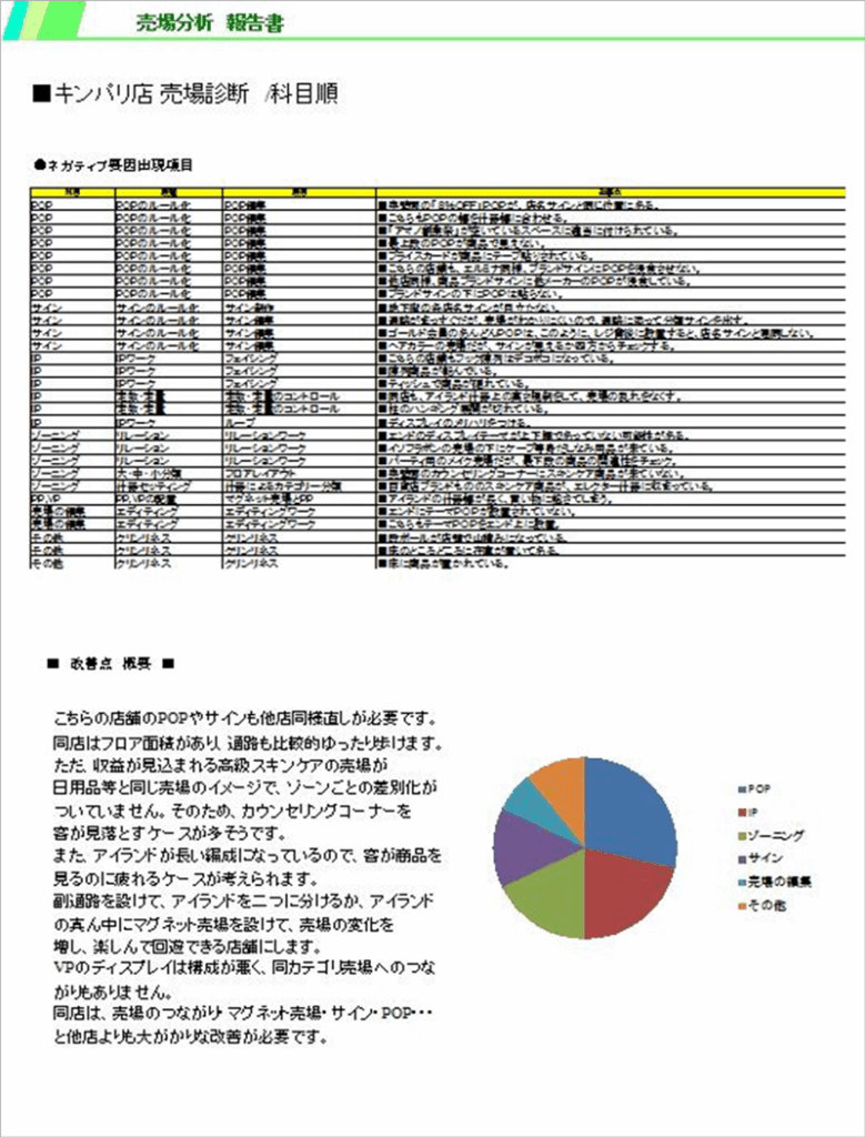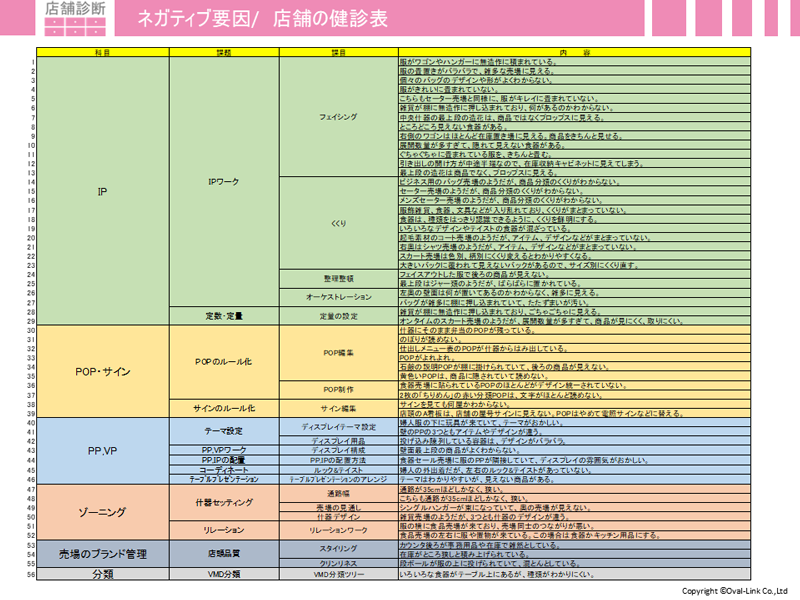 先ほどの店舗診断シートは色分けがされていないのと、表の大・中・小分類が見にくかったです。