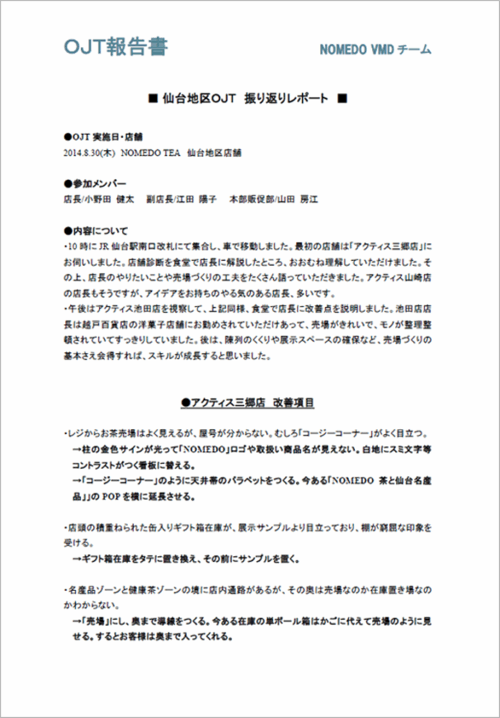 店舗診断シートが研修のゴールをも示しているのです。